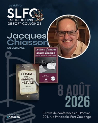 Nous vous dévoilerons ici-même la liste des auteurs et maisons d'éditions qui seront des nôtres le 8 août 2026. Pour cette 2ᵉ édition haute en couleurs, des auteurs de différentes maisons d’édition de l’Ontario francophone, du Québec et même du Nouveau-Brunswick seront présents. La demande est forte et la sélection sera difficile. Les places sont limitées. Exposants, vous avez jusqu'au 1ᵉʳ juin pour réserver votre place.